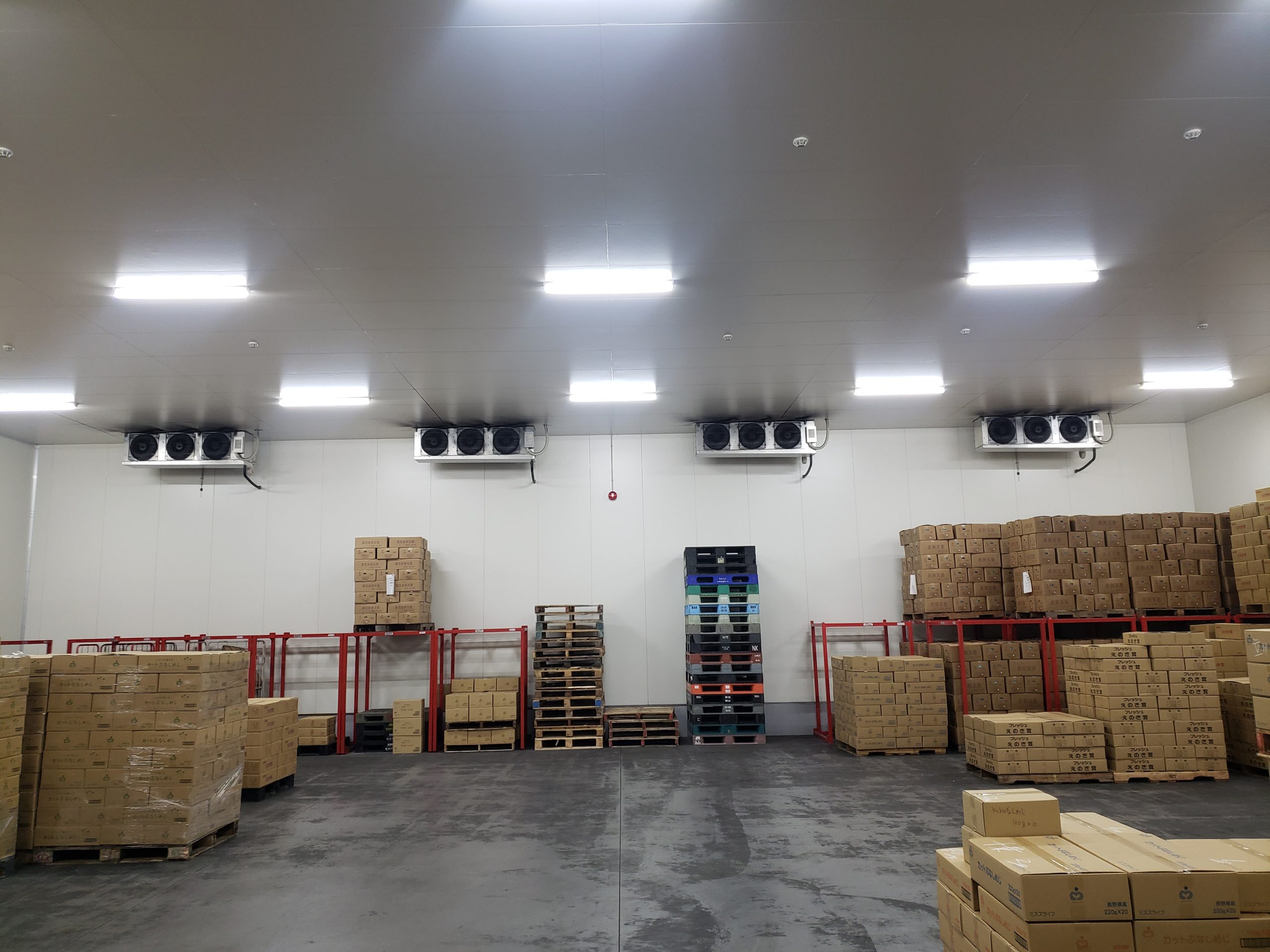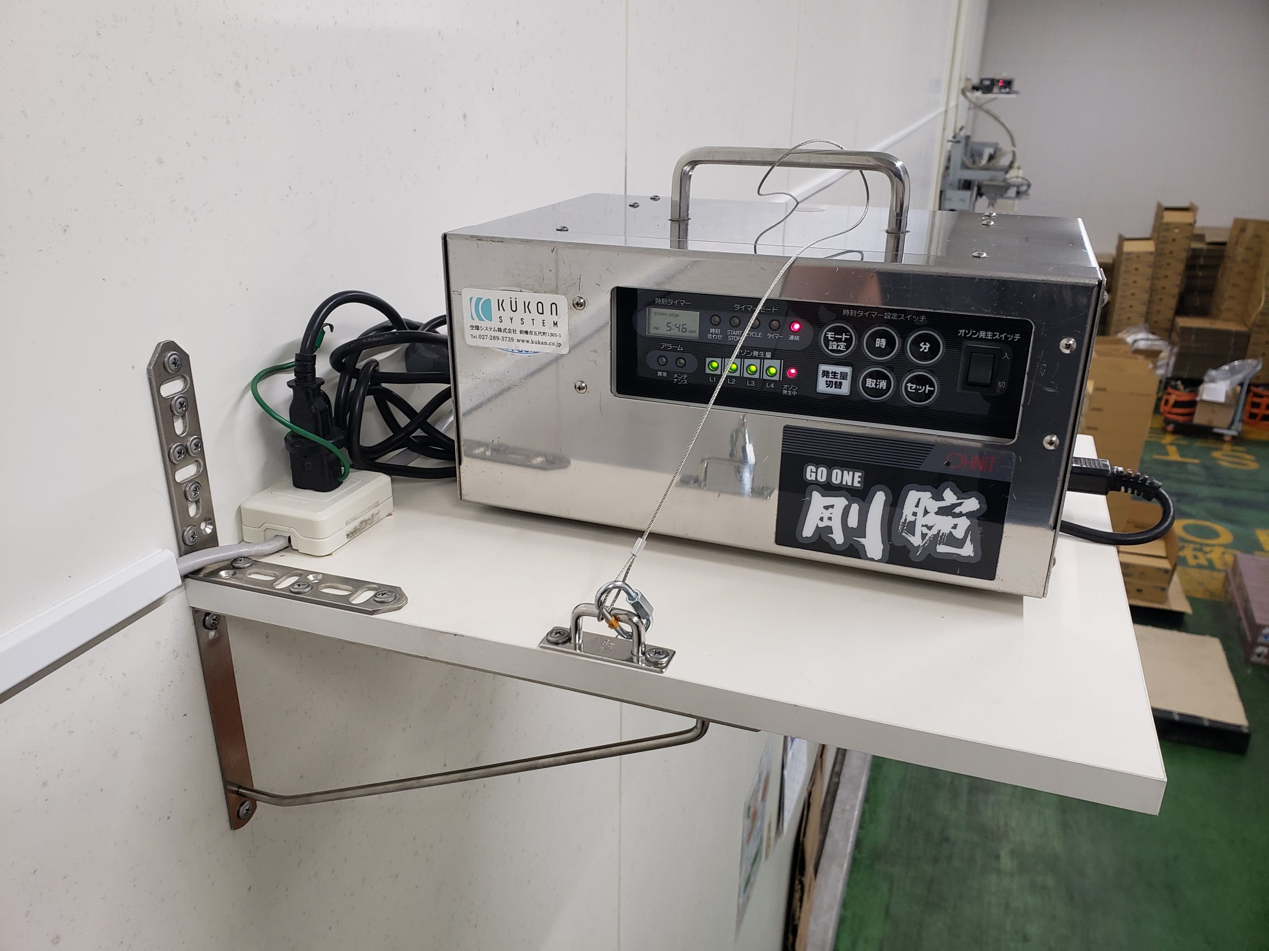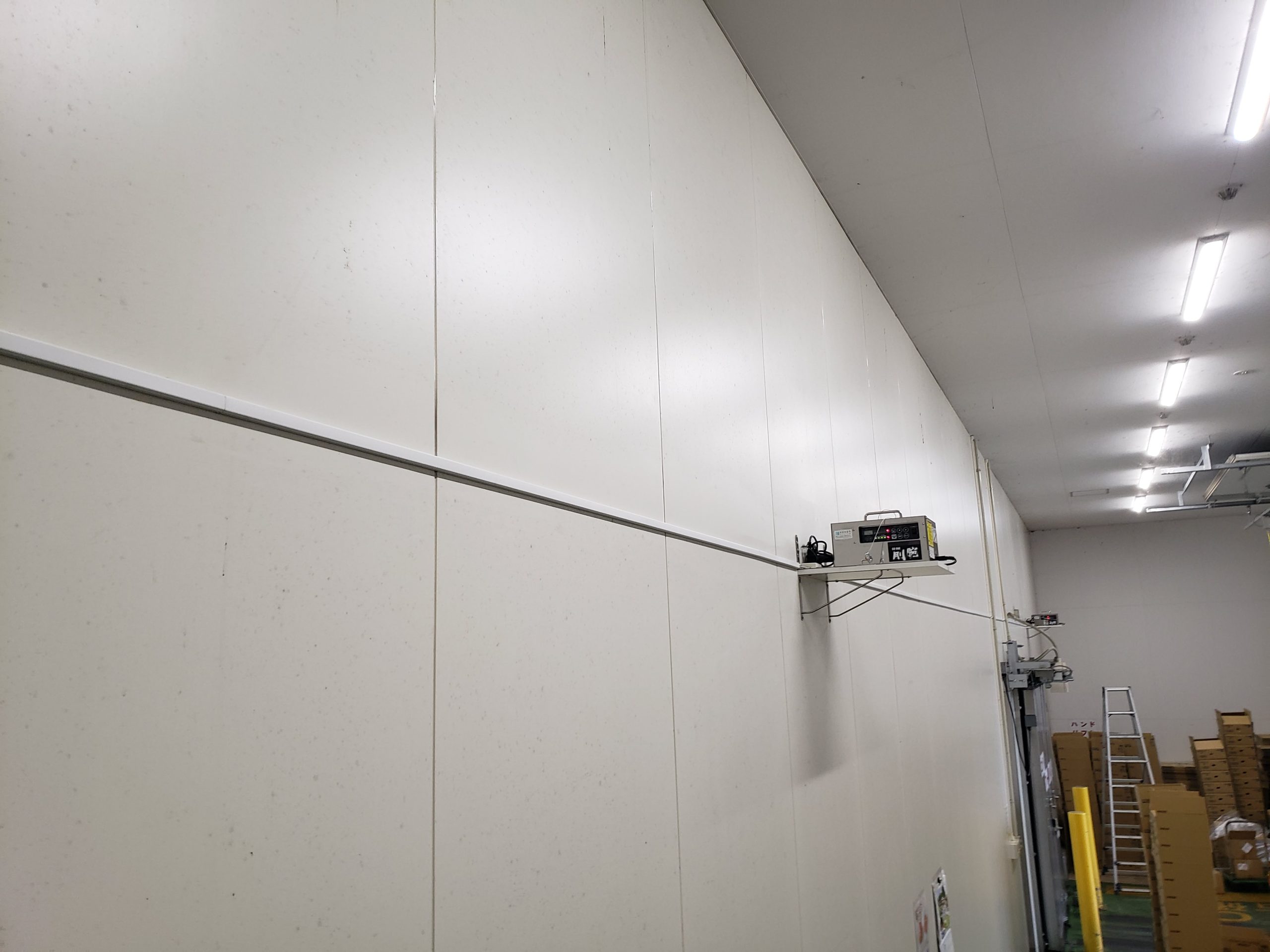 生鮮野菜の一次保管用冷蔵倉庫(約1800㎡)で野菜の鮮度保持及び除菌を目的として、燻蒸式オゾン発生器(剛腕GWN-1000T)2台の設置工事を実施。