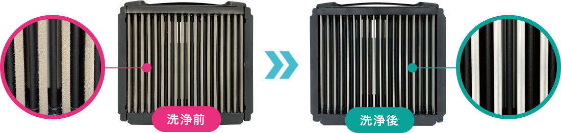 「【1】プレフィルター【2】イオン化ワイヤーフレーム【3】集塵フィルター」の洗浄品を宅配便でお届けします。