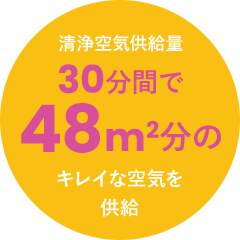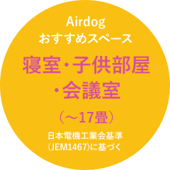 | 清浄空気供給量※2 | 30分間で48㎡分のキレイな空気を供給 エアドッグおすすめスペース 自宅リビング・店舗・オフィス(~17畳)日本電機工業会基準(JEM1467)に基づく |