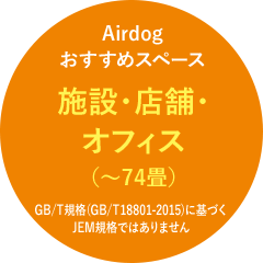 | 清浄空気供給量※3 | 30分間で214㎡分のキレイな空気を供給 エアドッグおすすめスペース 自宅リビング・店舗・オフィス(~74畳)GB/T規格(GB/T18801-2015)に基づく。JEMA規格ではありません |