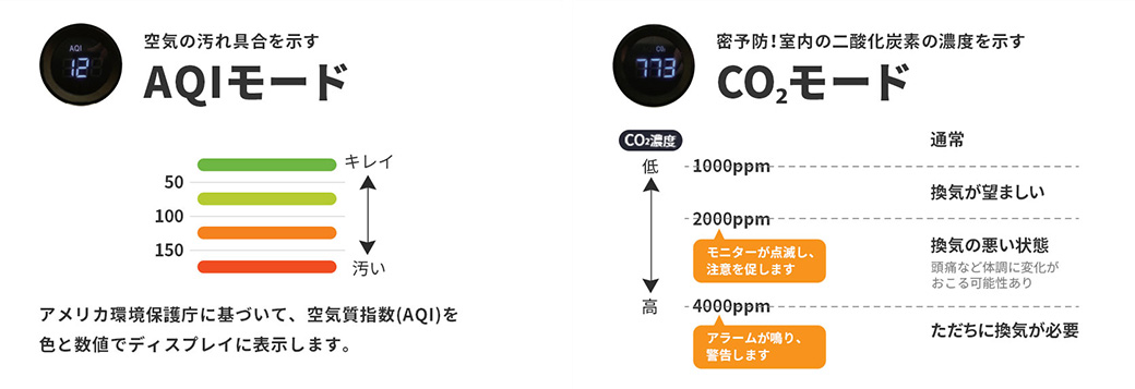 | 実装センサー | AQIセンサー、CO2センサー、温度・温度計 ※湿度・温度計は実装なし |