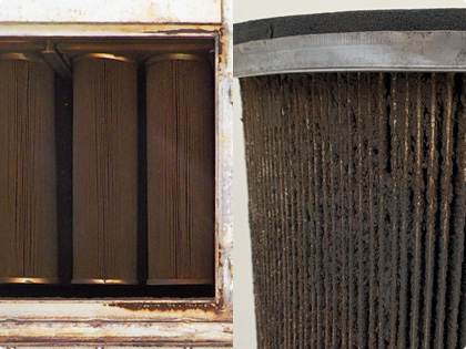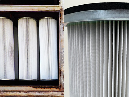 お客様の工場内の集塵機にて「粉塵の吸込みが悪くなった」「集塵効率が悪くなり本体から噴煙が舞う」等