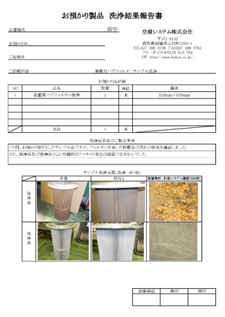 無料で洗浄を行い「サンプル洗浄報告書」と「洗浄見積書」を添付して返送致します。