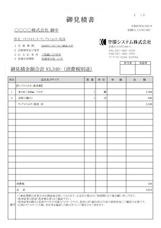 フィルター洗浄の場合:1本:¥3,500=1式洗浄:¥42,000